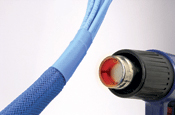 Gently apply heat from a heat gun or torch with an appropriate diffusion attachment. Keep the heat source far enough away so that hot metal or direct flame don’t come in contact with the tubing, wires or sleeving. Move the heat around the bundle to prevent damaging the sleeving and to ensure that all areas of the tubing have been shrunk to their limits. Be patient and work slowly. Once cooled, your installation is complete.