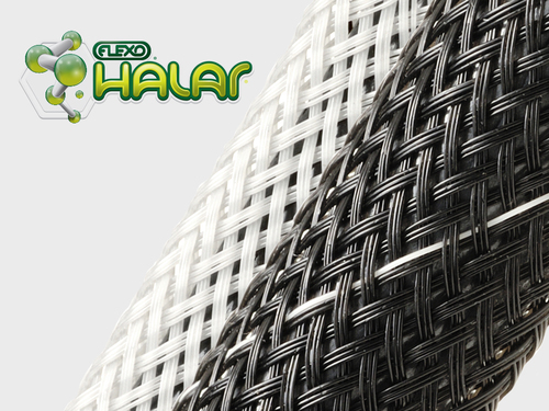 Flexo Halar® (HTN) zefldovende sleeving wordt gebruikt waar ontvlambaarheid, hoge temperatuur bestendigheid en lage outgassing primaire zorgen zijn. Flexo Halar® is gevlochten van 0,28 mm ethylene chlorotriflouroethylene (ECTFE) copolymer monofilament.
